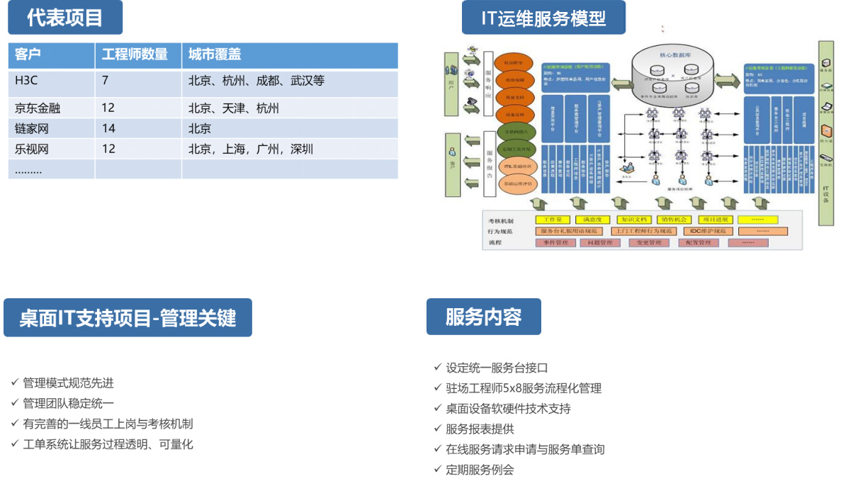 卓越运维(北京)科技有限公司根据客户的要求,对其总部及分支提供工作日周一至周五 9:00-18:00的驻场服务响应支持。